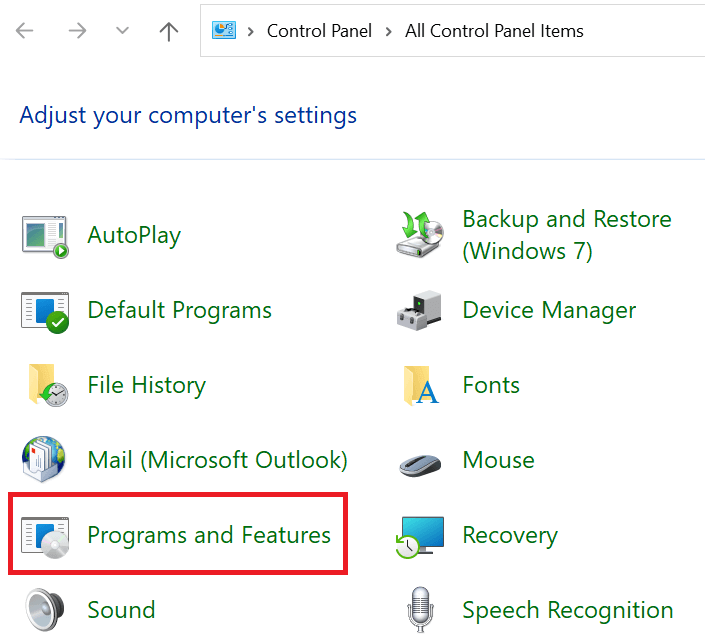 Étape 3 : Dans la fenêtre Panneau de configuration, recherchez puis cliquez sur leProgrammes et fonctionnalitésoption.