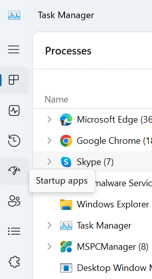 Étape 2 : Puis à partir ducôté gauchedes fenêtres du Gestionnaire des tâches, cliquez sur leApplications de démarrageoption.