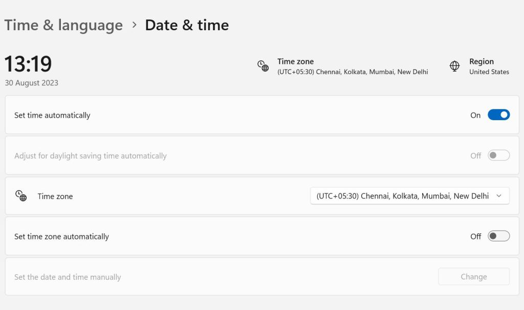 La première étape consiste à vérifier et modifier la date et l’heure de votre PC. Vérifiez la date et l'heure affichées par votre ordinateur dans le coin inférieur droit de votre écran. Vous devez modifier les paramètres s’ils ne correspondent pas à la date et à l’heure réelles. Voici les étapes :