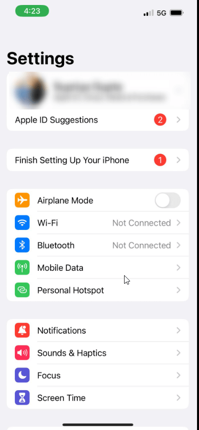 3. Appuyez sur votreIdentifiant Appleet appuyez surAfficher l'identifiant Apple. Si vous disposez d'iOS 15 et supérieur : appuyez surMédias et achatspuis cliquez surAfficher le compte.