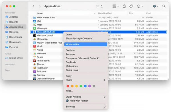Étape 3 : Ouvrez le Finder et accédez au dossier Applications. Recherchez Microsoft Outlook et faites-le glisser vers la corbeille.