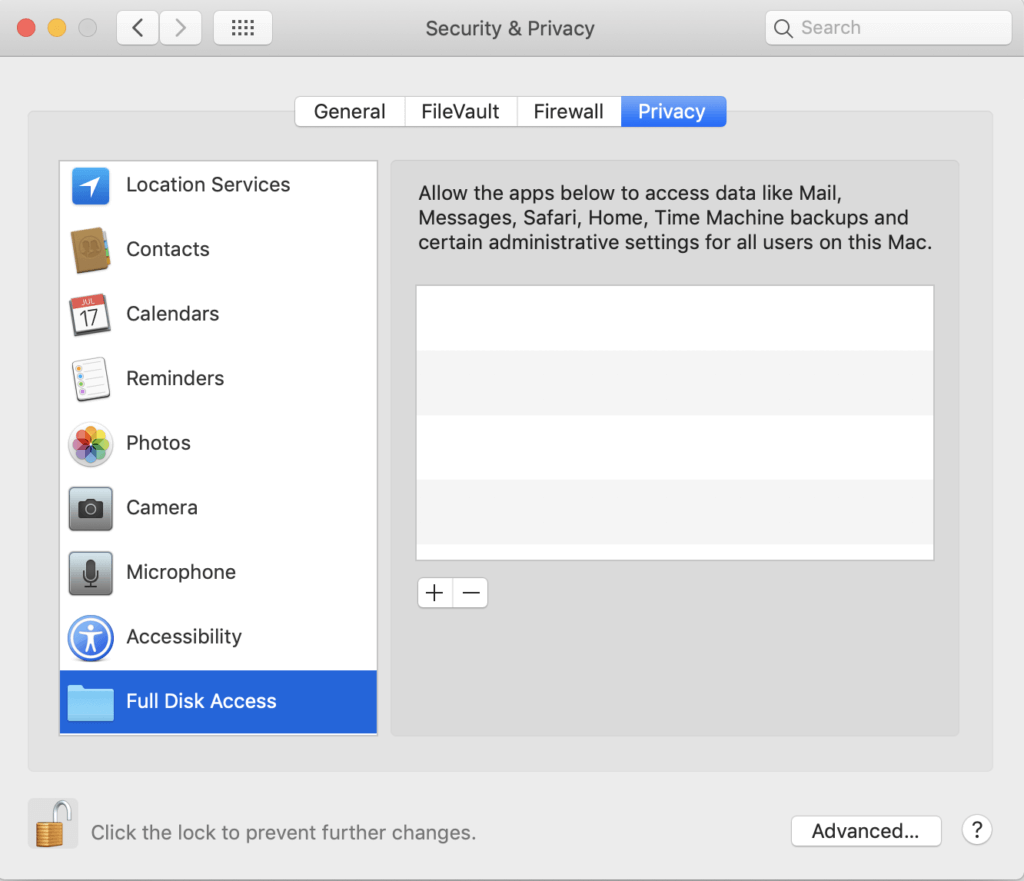 Étape 2 : Cliquez sur l'icône de cadenas dans le coin inférieur gauche et entrez votre mot de passe administrateur pour apporter des modifications. Dans la barre latérale gauche, sélectionnez « Accès complet au disque ».