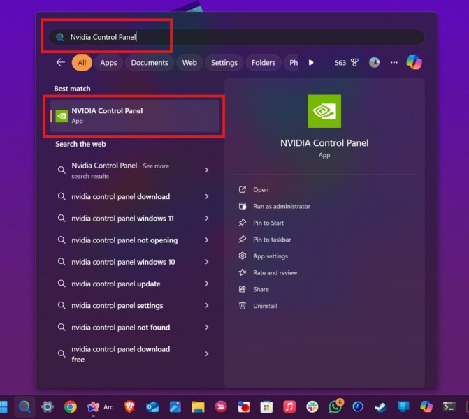 2.Tapez «Panneau de configuration Nvidia» etcliquez sur le même to lancer l'outil.