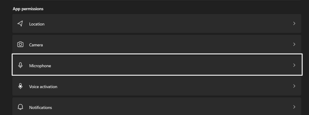2.Dans leConfidentialité et sécuritérubrique, cliquez surMicrophonesous leAutorisations des applicationssection.