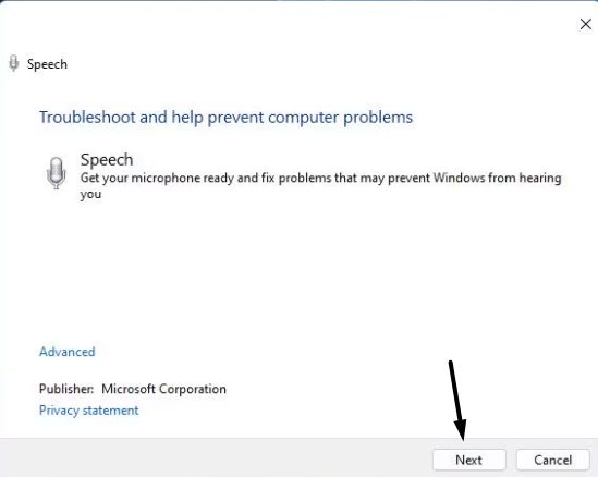 4.Cliquez sur leSuivantbouton et laissez-le trouver et résoudre les problèmes liés aux composants vocaux de votre système.