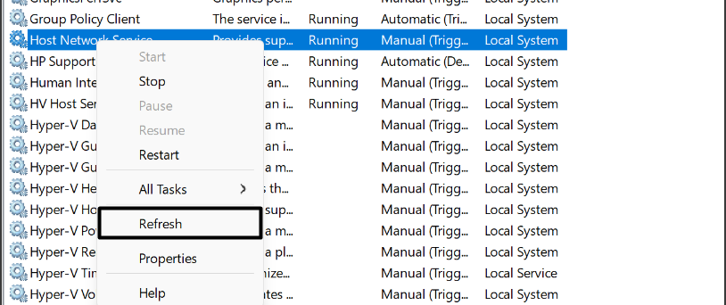 4.Enfin, sélectionnez leRafraîchirdans le menu déroulant pour rétablir le service réseau hôte et résoudre tous les problèmes liés à celui-ci.