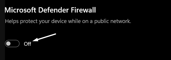 3.Après cela, cliquez sur leRéseau privéoption surPare-feu et protection du réseaupage et désactivez la bascule présente sous lePare-feu Microsoft Defenderoption.