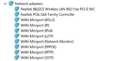 Maintenant, faites de même avec d’autres adaptateurs réseau WAN Miniport et vérifiez l’état du problème.