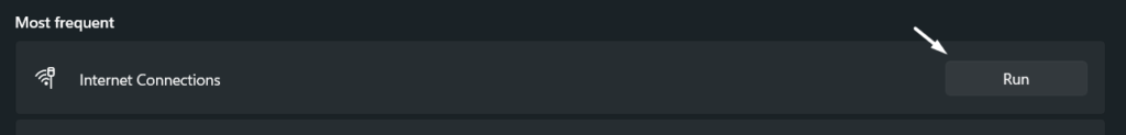 1.Pour commencer, passez à laDépannersection de laParamètresapplication et recherchez leConnexions Internetdépanneur sous leLe plus fréquentsection.