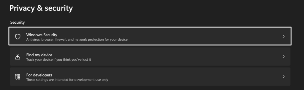 1.Pour commencer, ouvrir leConfidentialité et sécuritésection de laApplication Paramètresdans la barre latérale gauche et choisissezSécurité Windows.