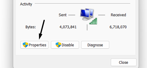 4.Après cela, choisir lePropriétésoption en vertu duActivitézone et localisez leProtocole Internet version 6 (TCP/IPV6)option dans la nouvelle fenêtre.