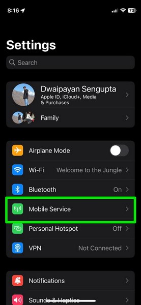 2.Allez auCellulaireouService mobileoption sur la liste.