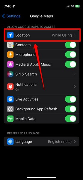 Ainsi, si vous rencontrez un problème de widgets qui ne fonctionnent pas avec l'un de ces widgets d'application sur votre iPhone, vous souhaiterez peut-être vous assurer qu'ils disposent des autorisations de localisation requises sur votre appareil. Vous pouvez suivre les étapes ci-dessous pour ce faire :
