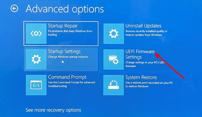 Étape 5 :Cliquez sur leParamètres du micrologiciel UEFIoption sousOptions avancées.