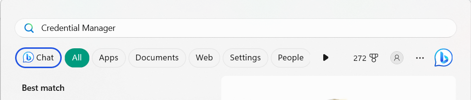 2.SélectionnerGestionnaire des informations d'identificationà partir des résultats de recherche sous leMeilleure correspondancesection pour l’ouvrir.