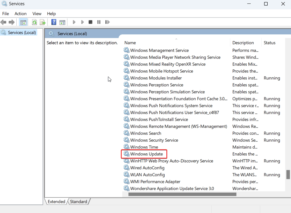 Étape 3 –Localisez leMise à jour Windowsservice, faites un clic droit dessus, puis cliquez surCommencer.