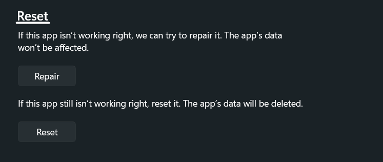 Vous pouvez réparer et réinitialiser l'application pour résoudre les problèmes si la mise à jour n'a pas aidé. Nous vous conseillons de vous déconnecter de votre compte Xbox et de réinitialiser votre compte Microsoft Store avant de poursuivre cette procédure. Une fois cela terminé, suivez ces étapes :