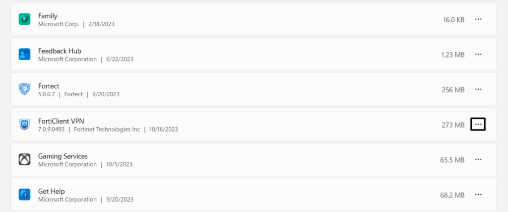 3.Cliquez sur letrois points (…)à côté de l'application, et dans le menu déroulant, choisissez leDésinstalleroption.