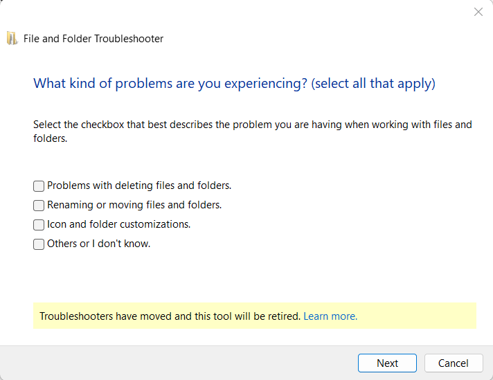 Vous pouvez envisager d'exécuter l'utilitaire de résolution des problèmes de fichiers et de dossiers Windows sur votre PC, car ce problème pourrait provenir des fichiers et du dossier. C'est assez facile àexécuter l'outil Fichiers et dossiers Windows. Nous avons mentionné ci-dessous les étapes pour exécuter cet outil de dépannage dans Windows 11 :