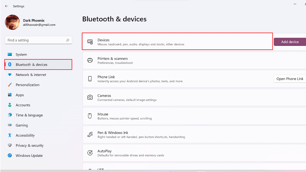 - OuvrirParamètres> cliquez sur «Bluetooth et appareils» > cliquez surAppareils.