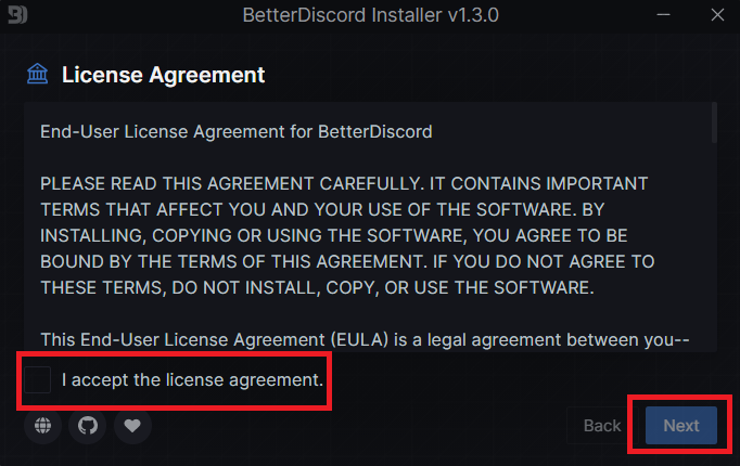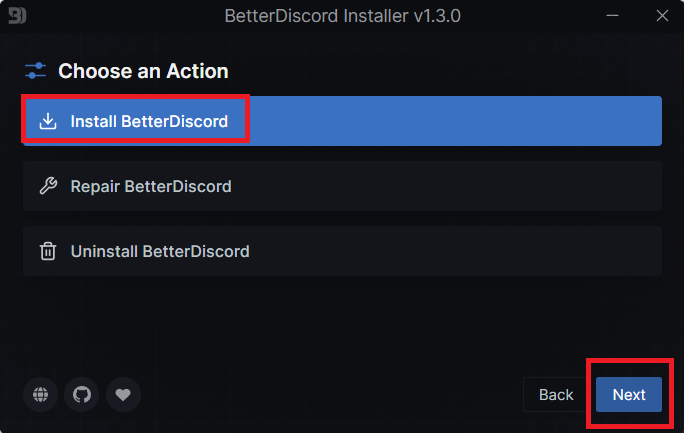 5.Choisissez leInstaller BetterDiscordet cliquez sur l'optionSuivantbouton.