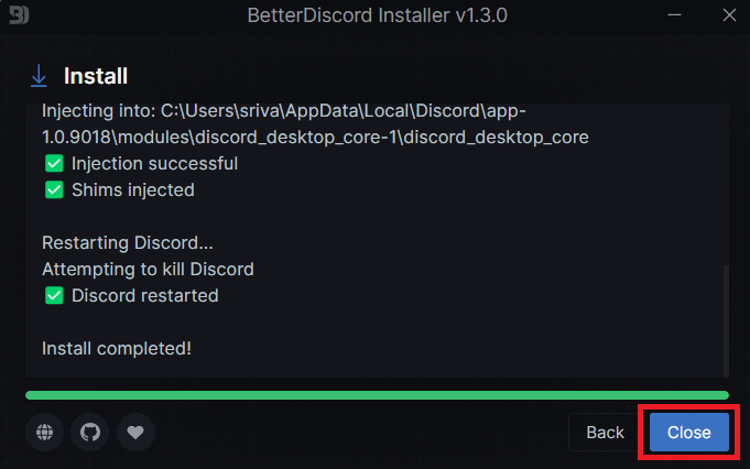 7.Une fois le processus terminé, cliquez sur leFermerbouton et votre PC démarrera automatiquement Discord.