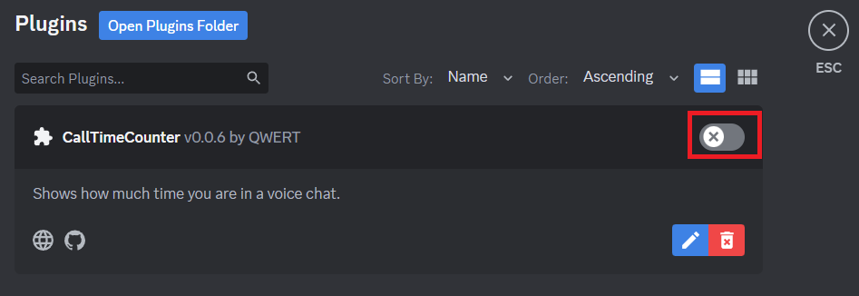 6.Collez le fichier copié dans le dossier Plugins et ouvrez à nouveau Discord.