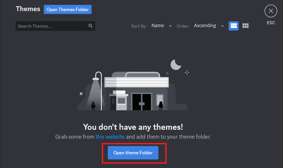 1.Ouvrez le site officiel de BetterDiscord et cliquez surThèmes.