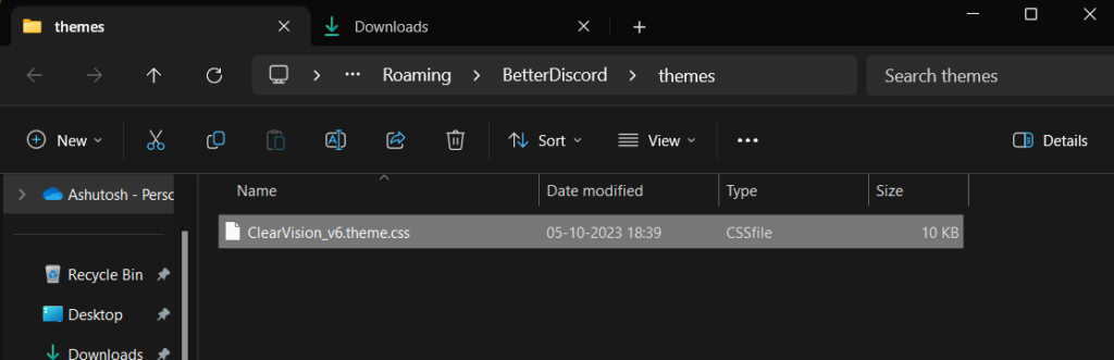 6.Collez le fichier copié dans le dossier Thèmes et revenez à Discord.