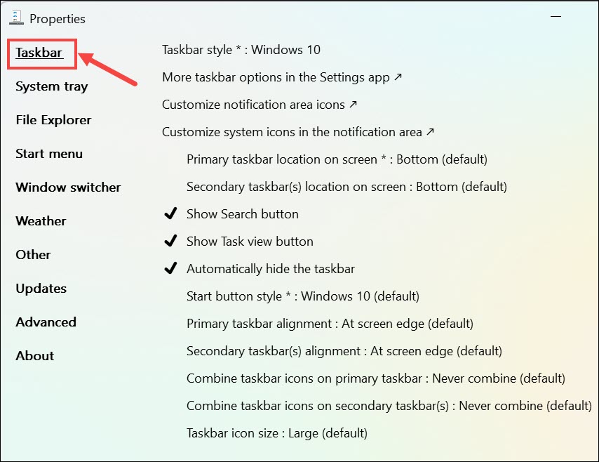 Pour personnaliser l'apparence de la barre des tâches à l'aide d'ExplorerPatcher :