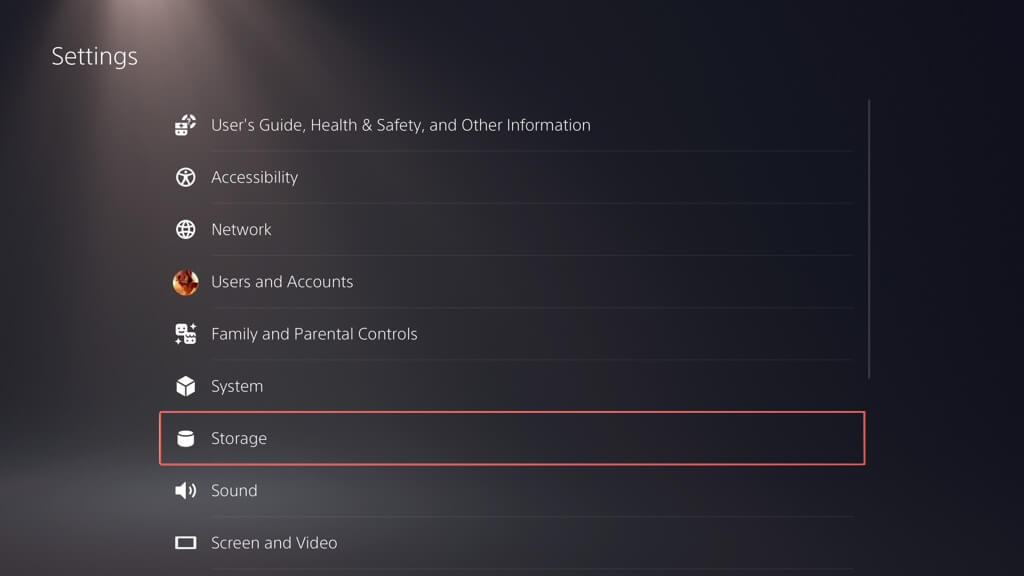 - Visitez le menu Paramètres de la PS5 et sélectionnezStockage.