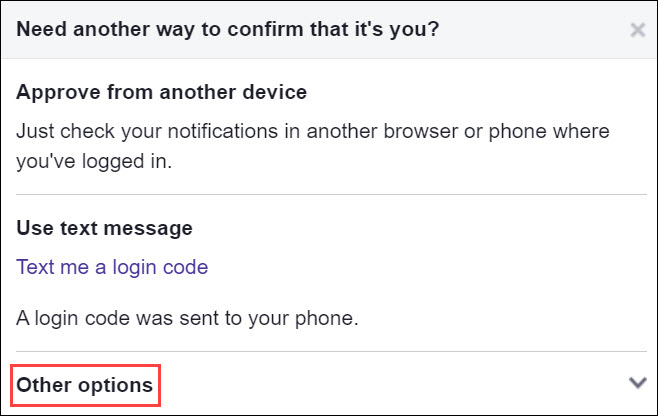 Si vous ne pouvez pas accéder à Code Generator, vous pouvez demander un code de connexion à Facebook. Ce code sera envoyé à votre numéro de téléphone enregistré. Voici comment procéder :