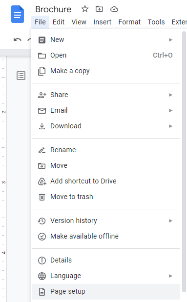 Ouvrez n'importe quel modèle de brochure et sélectionnezDéposer>Mise en page. Ici, vous pouvez personnaliser tous les aspects de la mise en forme de la page de votre brochure.