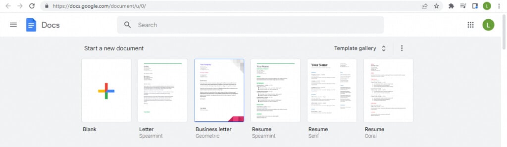 - Vous pouvez déjà voir quelques modèles courants en haut, mais sélectionnez leGalerie de modèlesoption pour les afficher tous en même temps.