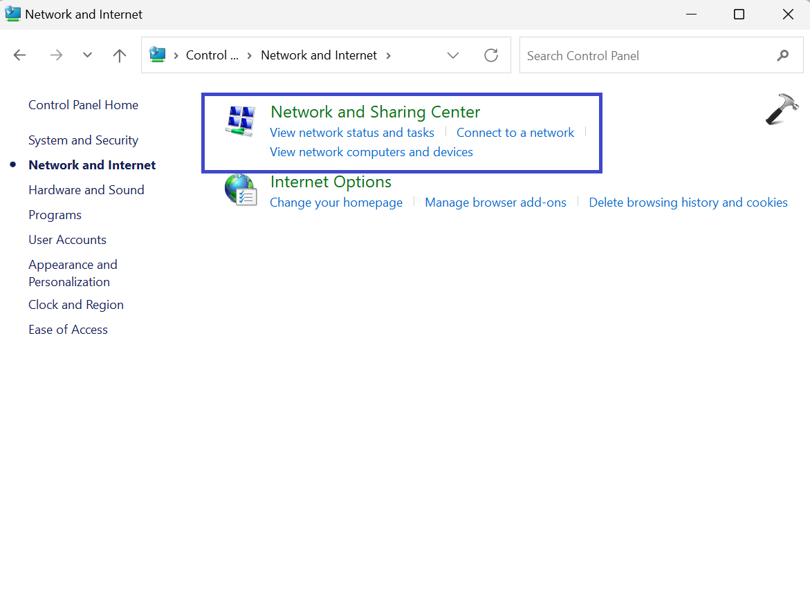 1. Ouvrez le Panneau de configuration et cliquez sur l'option « Réseau et Internet ».