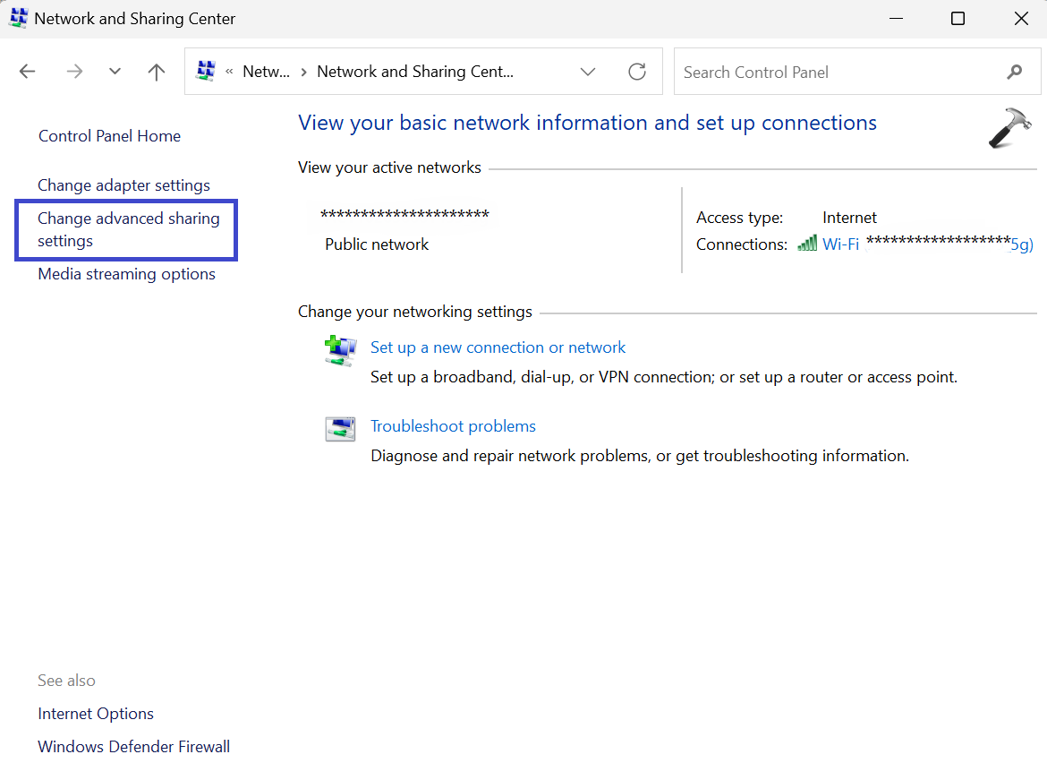 3. Dans le volet de gauche, cliquez sur l'option « Modifier les paramètres de partage avancés ».