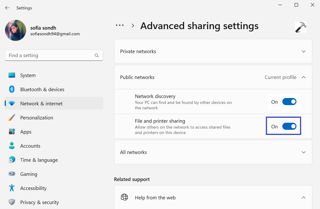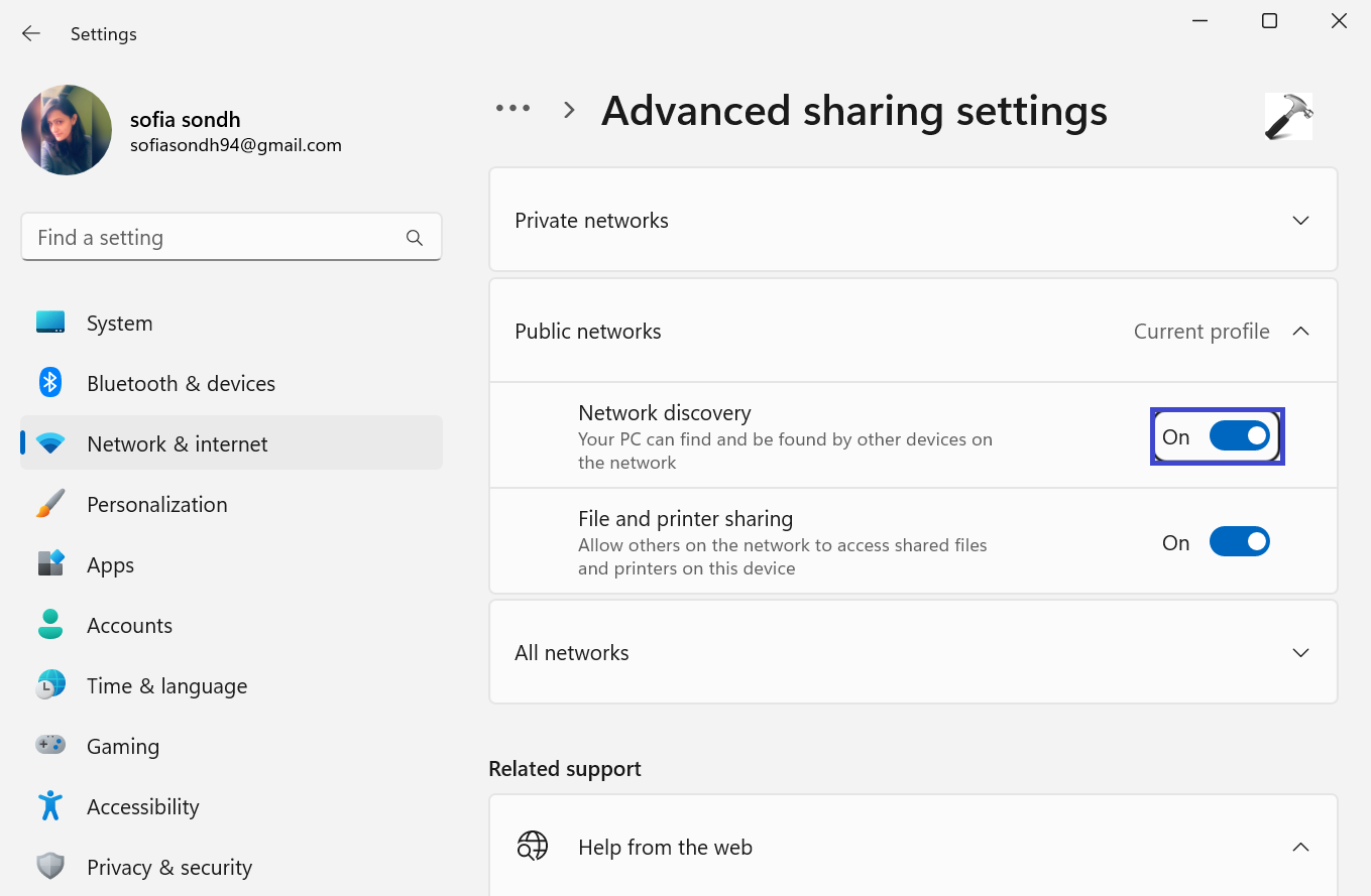 Activez l'option « Découverte du réseau ».