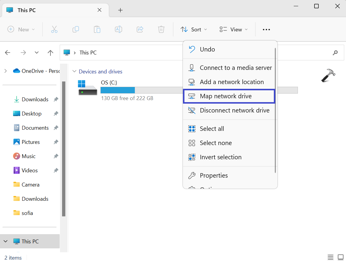 2. Cliquez sur trois points (…) et sélectionnez l'option « Mapper le lecteur réseau » dans le menu déroulant.