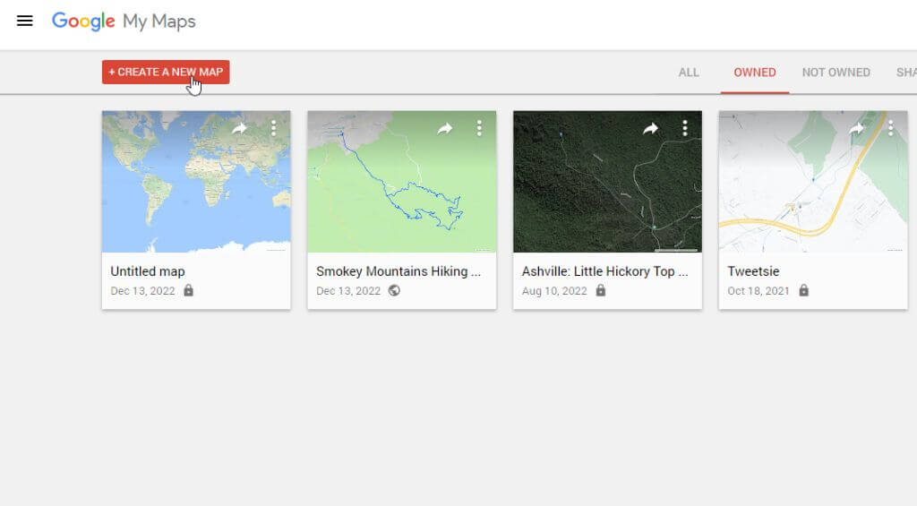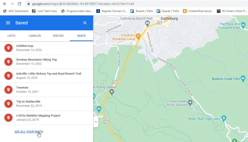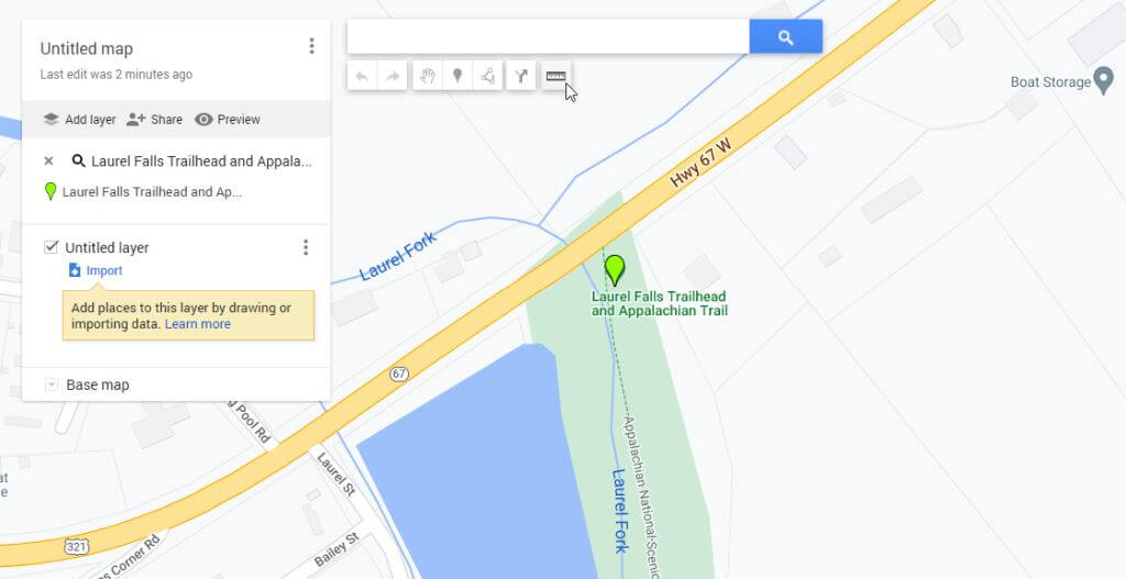 Une autre zone de Google Maps est votre bibliothèque My Maps dans laquelle vous pouvez créer et enregistrer des cartes avec des waypoints. Vous pouvez également mesurer les distances sur ces cartes.