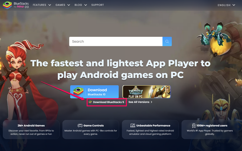 2Cliquez surTélécharger le bouton Bluestacks 5.