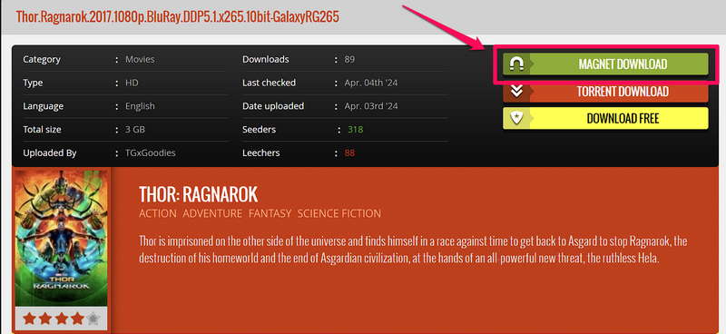 2.Là, cliquez sur leTéléchargement de l'aimantou Magnet Link (selon la disponibilité).