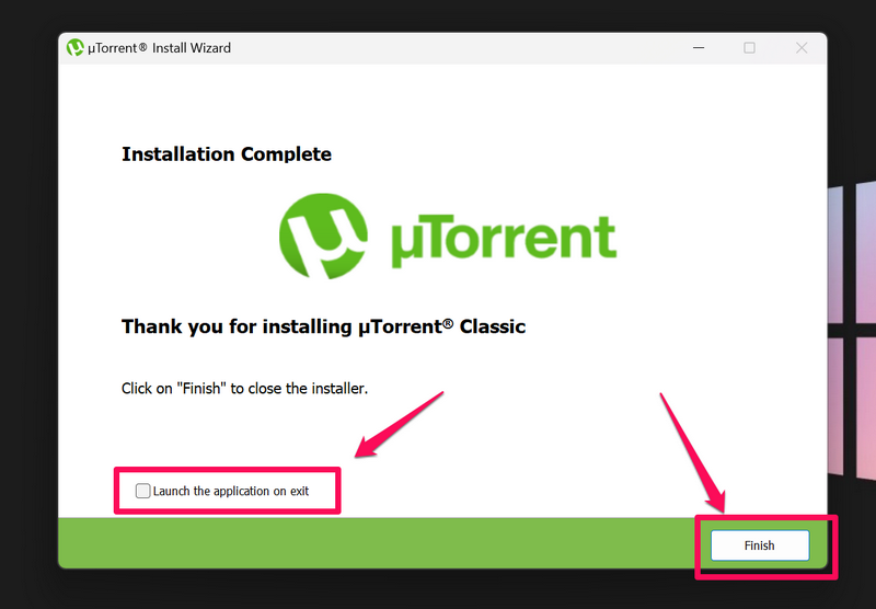 2.Maintenant,suivez les instructions à l'écranàterminer la configurationdu client uTorrent.