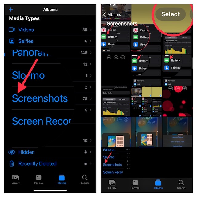 Et si vous souhaitez supprimer toutes les captures d'écran d'un coup, appuyez surSélectionner toutdans le coin supérieur gauche de l'écran, puis appuyez surle bouton poubelleen bas pour terminer.