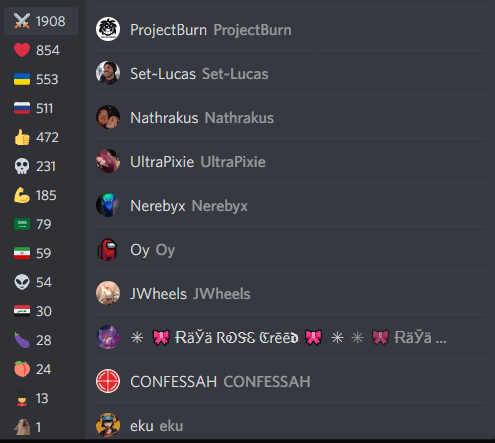 - SélectionnerLes réactions,et Discord affichera tous les noms qui ont réagi avec un emoji spécifique. Vous pouvez sélectionner différentes émoticônes dans une barre latérale pour voir les personnes qui les ont utilisées pour réagir à votre message.