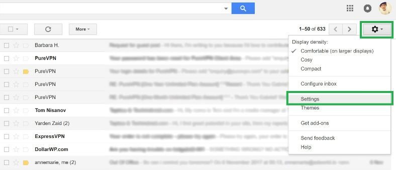 2.En haut à droite, cliquez sur le «roue dentéeIcône ".