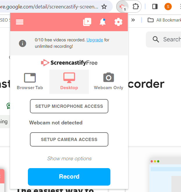 Prenons un exemple de Screencastify qui est l'un des meilleurs utilitaires d'enregistrement d'écran en ligne. Pour enregistrer votre écran sur un ordinateur portable Dell à l'aide de Screencastify, procédez comme suit :