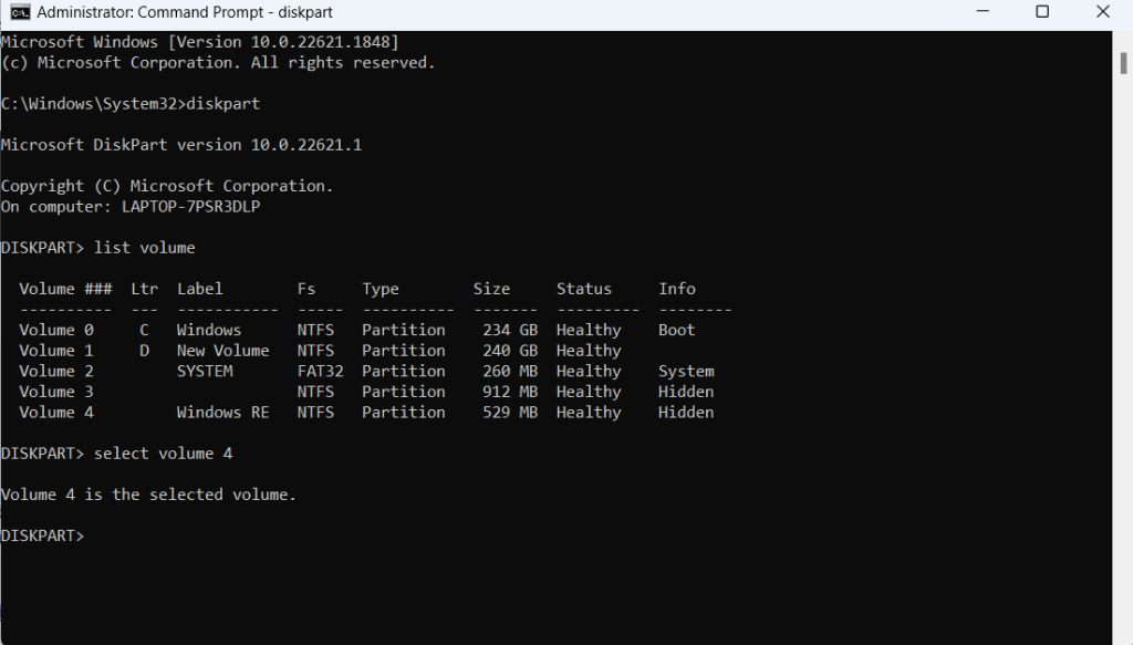 3. Ensuite, tapezvolume de la listeet appuyez surEntrer. Notez le numéro du volume devenuBRUT.