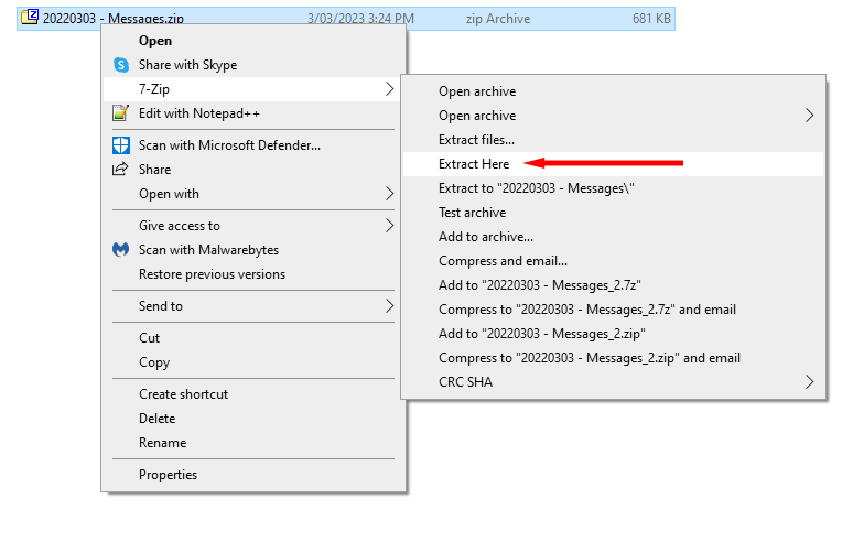 - Vos messages seront téléchargés dans un fichier ZIP. Décompressez-le où vous le souhaitez.