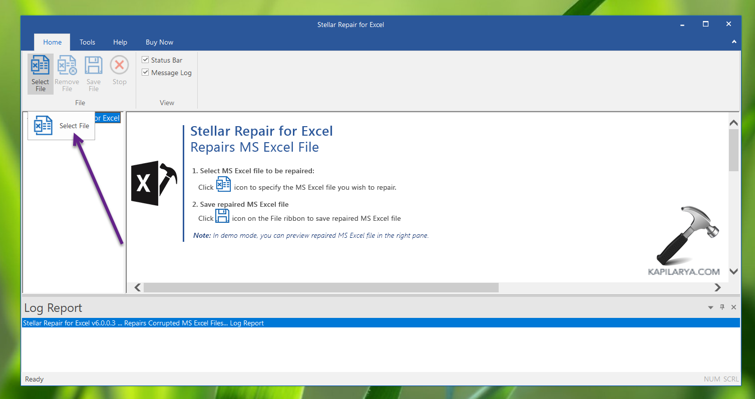 - Une fois l'installation terminée, lancez l'outil Stellar Repair for Excel. Cliquez sur leSélectionnez un fichieroption.
