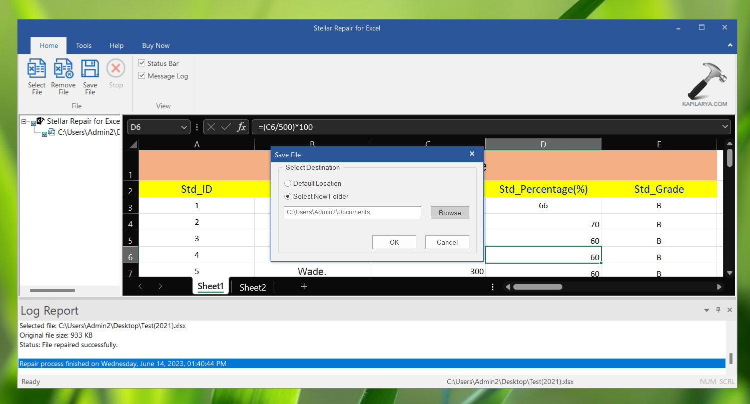 - Sélectionnez maintenant un emplacement pour enregistrer le fichier Excel réparé.